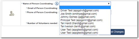 | By default, the person creating the Opportunity is the “Person Coordinating”. This also defaults the phone number and the email of the person selected in the “Person Coordinating” drop down box. |