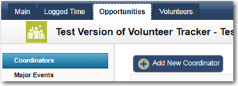 | 1) Click on the “Opportunities” tab and then select the “Coordinators” option. 2) Click on the “Add New Coordinator” button. |