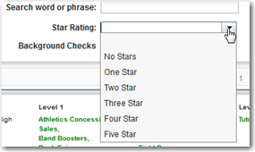 | The “Star Rating” will allow you to filter Volunteers based on the number of stars they have received for logging Volunteer time. This is particularly nice if you want to send an email to Volunteers based on their star rating. |