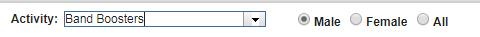 | The Male/Female filter will allow you to search for volunteers based on gender. This can be helpful if you need a quick count of the number of male or female volunteers. For example, you could search Male volunteers with an activity of Band Boosters to get a quick count. |