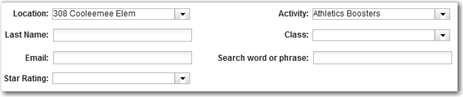 | Example 1: Using the “Approved Volunteers” menu option. Find all Volunteers at Cooleemee Elementary who have Athletics Boosters selected on their activities. |