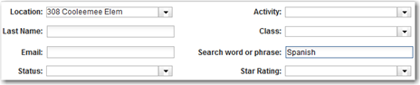 | Example 2: Using the “All Volunteers” menu option. Locate all Volunteers at Cooleemee Elementary that have Spanish language skills. |