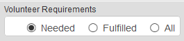 Make sure that you have selected "Needed" as the requirement so you will see the list of opportunities for which volunteers are needed.