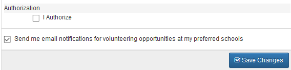 Update any personal information on your application if needed. Scroll down and authorize, check the notification box if you would like to receive notifications for volunteering opportunities, and click "Save Changes":